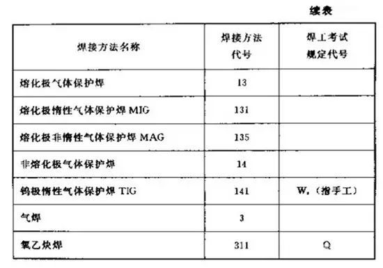 在焊接結(jié)構(gòu)圖樣上,焊接方法可按國家標(biāo)準(zhǔn)GB5185-85的規(guī)定用阿拉伯效字表示,標(biāo)注在指引線的尾部。常用焊接方法代號見下圖所示。如果是組合焊接方法,可用“/”分開,左側(cè)表示正面(或蓋面)的焊接方法,右側(cè)表示背面(或打底)焊接方法。例如V形焊縫先采用鎢極氫弧焊打底,后用手工電弧焊蓋面,則表示為141/111。