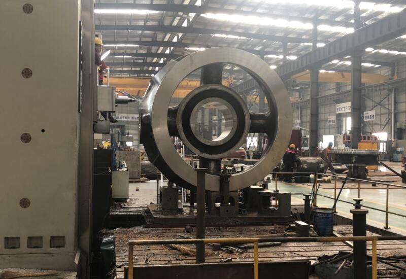 兩路進(jìn)油口注油,一路從主軸下端進(jìn)入,潤(rùn)滑球面軸承、球形瓦、機(jī)架襯套、主軸襯套,進(jìn)而潤(rùn)滑大小錐齒輪;另一路從傳動(dòng)軸端進(jìn)入,潤(rùn)滑傳動(dòng)軸襯套,最后兩路油從同一出油口排出。